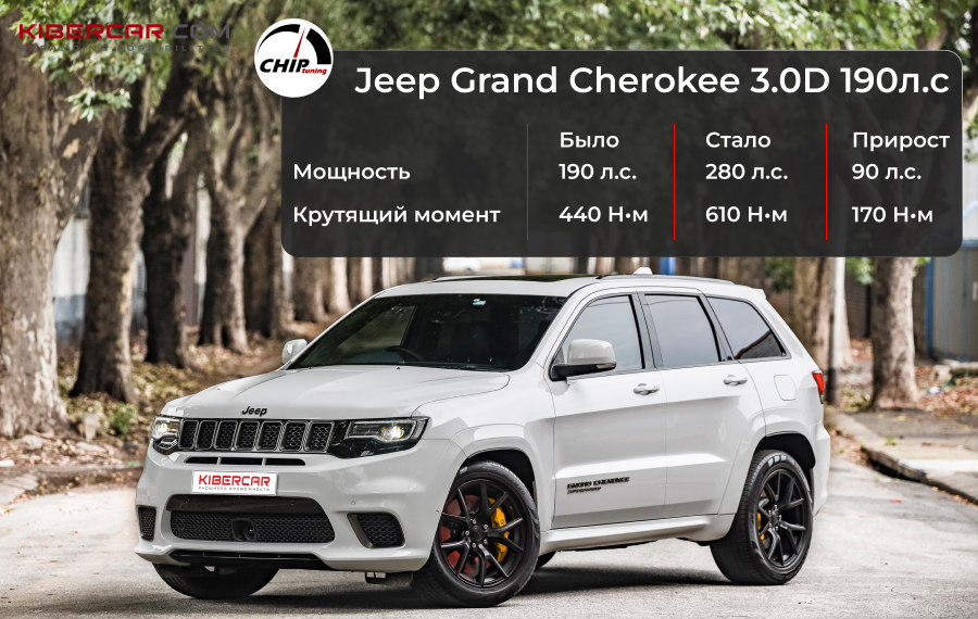 | Jeep Grand Cherokee | 3.0D 250л.с | 250 285 +35 | 570 630 +60 |