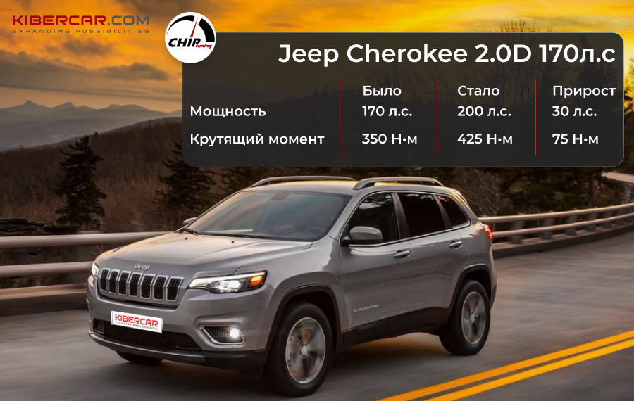 | Jeep Cherokee | 2.2D 200л.с | 200 210 +10 | 440 500 +60 |