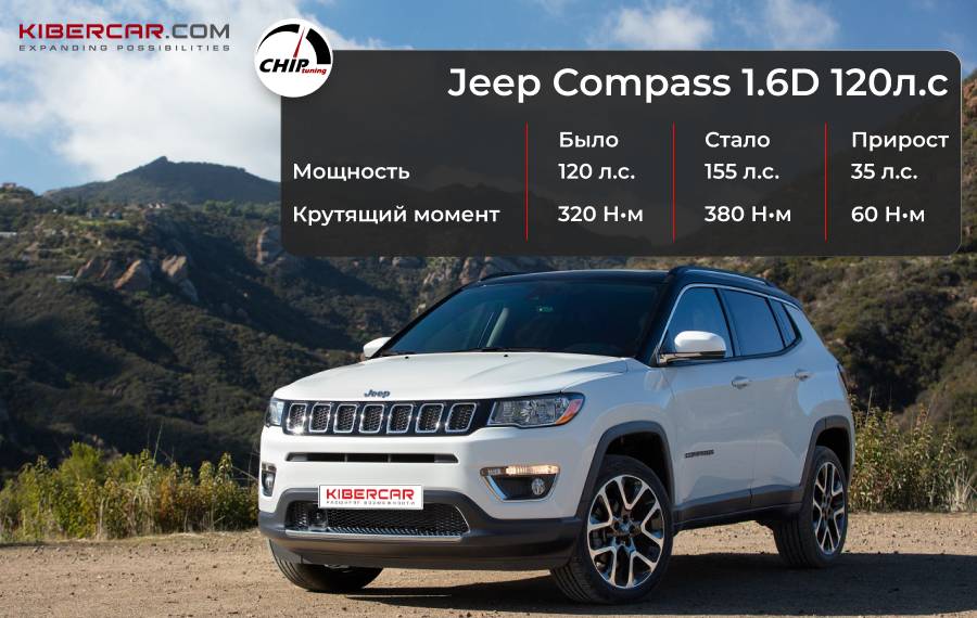 | Jeep Compass | 1.6D 120л.с | 120 155 +35 | 320 380 +60 |