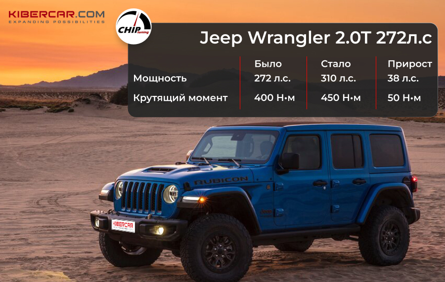 | Jeep Wrangler | 2.0T 272л.с | 272 310 +38 | 400 450 +50 |