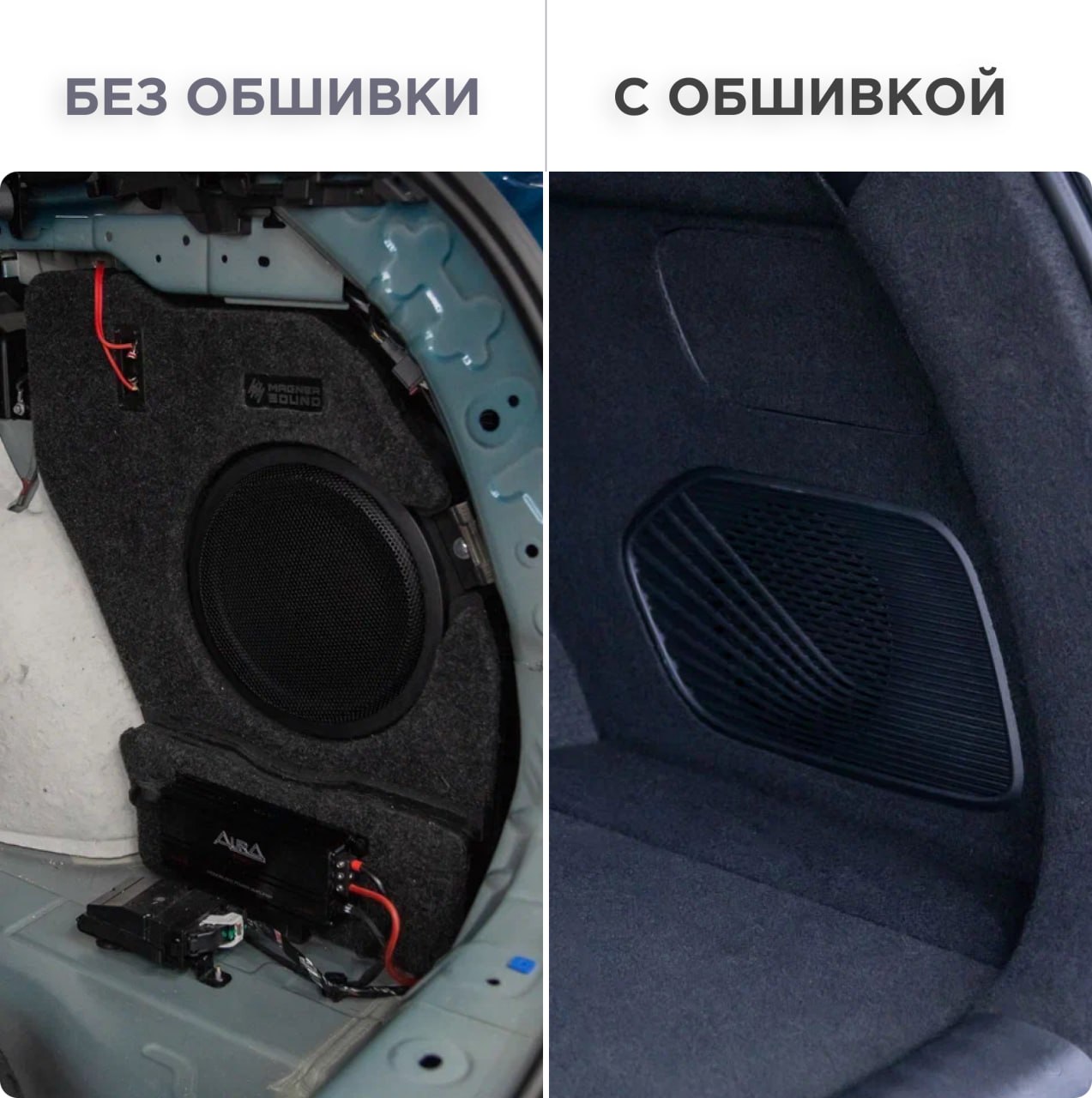 Мы изготавливаем корпуса Стелс для сабвуферов скрытого типа с учетом специфических особенностей каждого автомобиля. Предварительно подбираем оптимальное место размещения – полностью или частично за обшивкой, в подполье или в запаске, а затем проводим замеры по кузову и оцениваем объем.