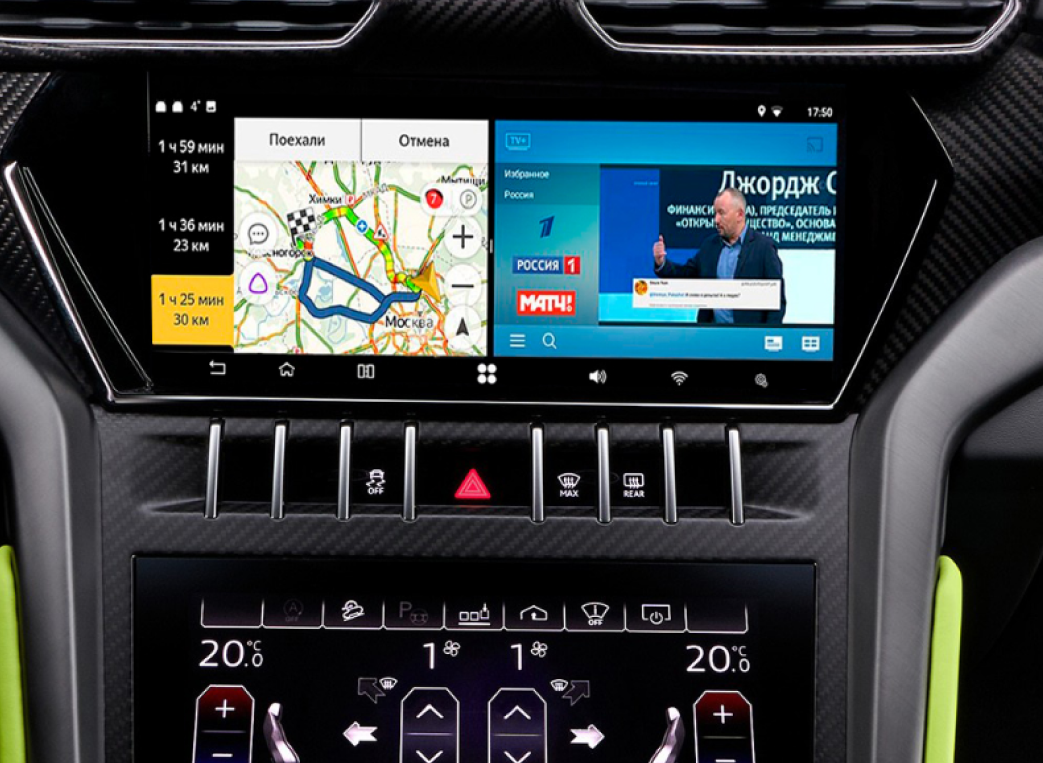 Да. AirTouch Performance обладает HDMI-выходом, благодаря чему картинку ОС Android с центрального монитора можно транслировать на любой экран с аналогичным методом приема сигнала. У нас в наличии есть специальные для этого мониторы в подголовник передних сидений.