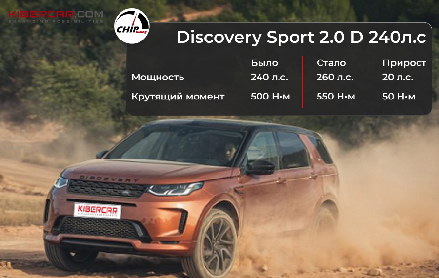 | Discovery Sport | 2.0T 240л.с | 240/270 270 +30 | 340 440 +100 |