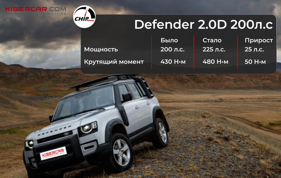 | Defender | 2.0D 200л.с | 200 225 +25 | 430 480 +50 |