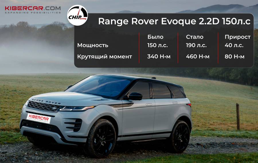 | Range Rover Evoque | 2.2D 190л.с | 190 220 +30 | 420 470 +50 |
