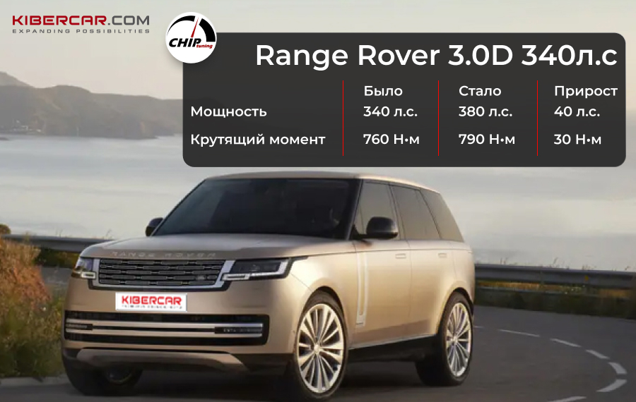| Range Rover | 3.0T 340л.с | 340 400 +60 | 450 500 +50 |