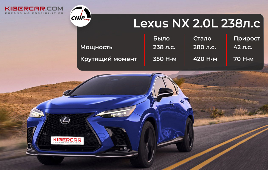| Lexus NX | 2.0L 238л.с | 238 280 +42 | 350 420 +70 |