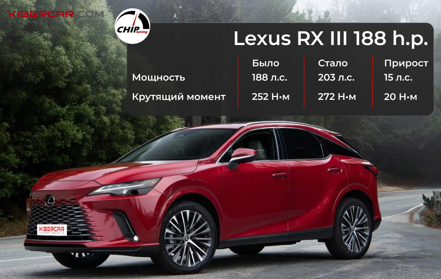 | Lexus RX | RX III 188 h.p. | 188 203 +15 | 252 272 +20 |