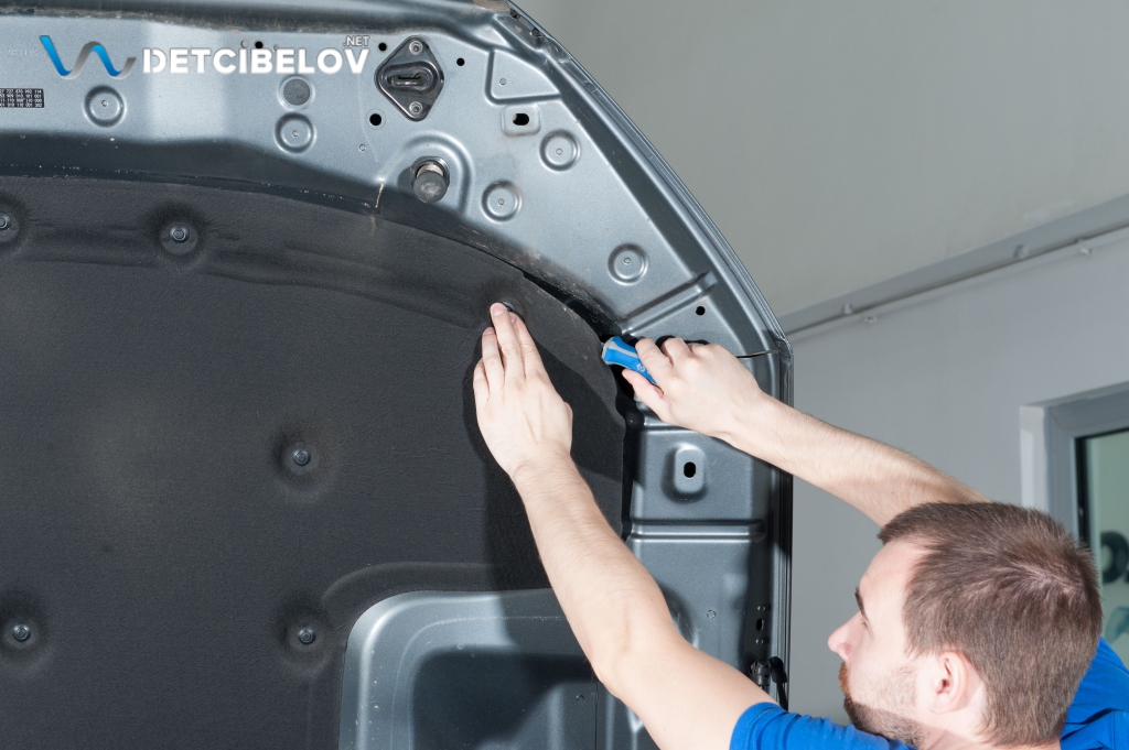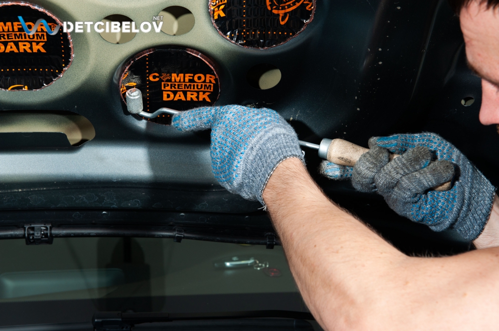 После шумоизоляции пола и зоны багажника, переходим к работе над капотом и крышкой багажника.