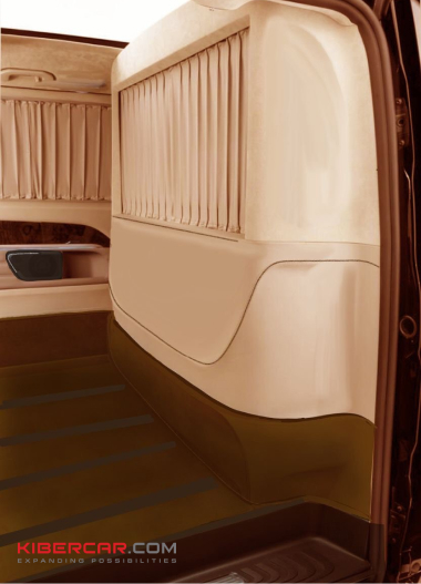 Кресла заднего ряда дорабатываются, получая дополнительную опцию подогрева, а также механические ящики. Кроме того, в салоне размещается бокс под фужеры, холодильник, механические подстаканники, раскладывающийся столик. Управлять мультимедиа и функцией подогрева очень просто – для этого предусмотрен блок в центральном подлокотнике.