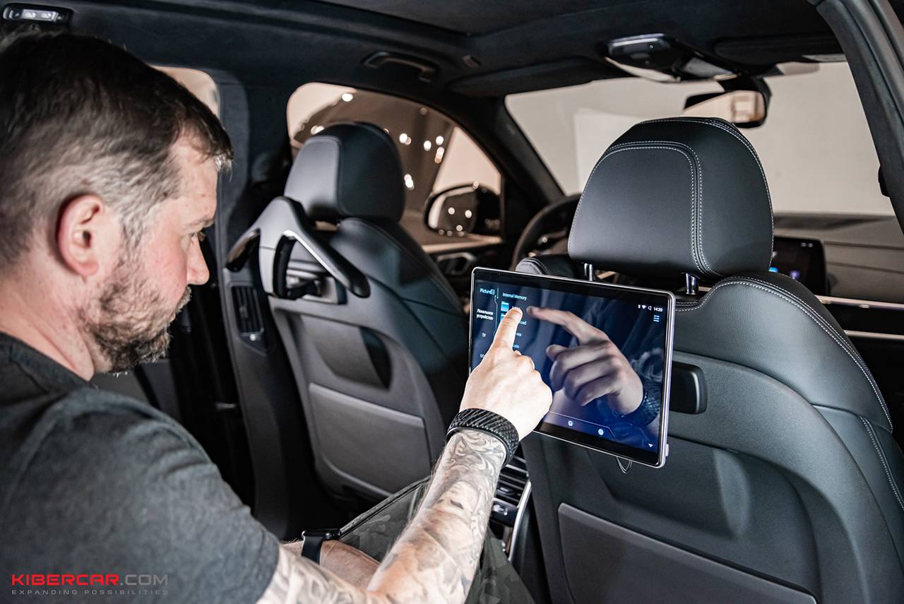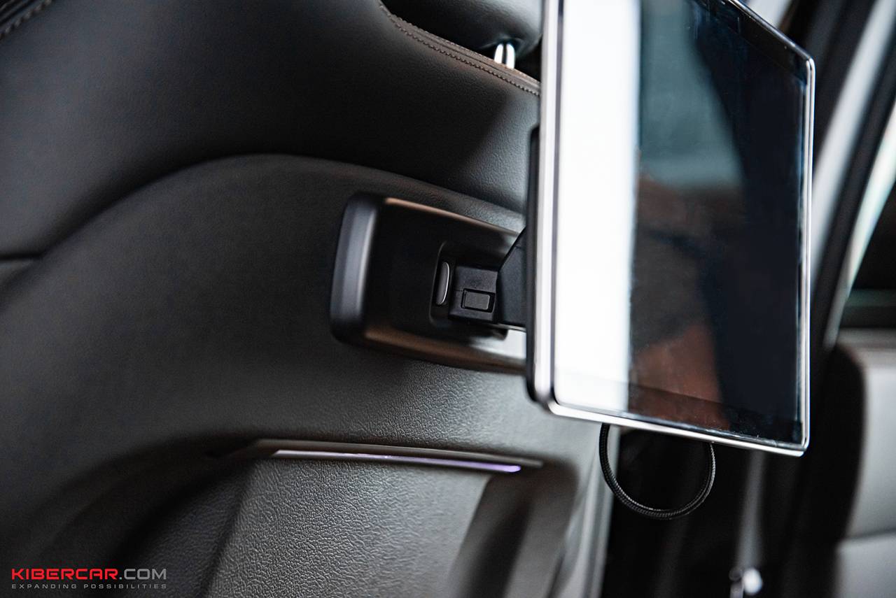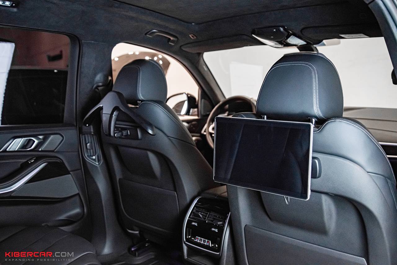Крепления позволяют разместить пассажирские мониторы с диагональю 11.6 и 12 дюймов. Они имеют сенсорное управление. Внешний вид мониторов органично дополняет интерьер салона BMW.