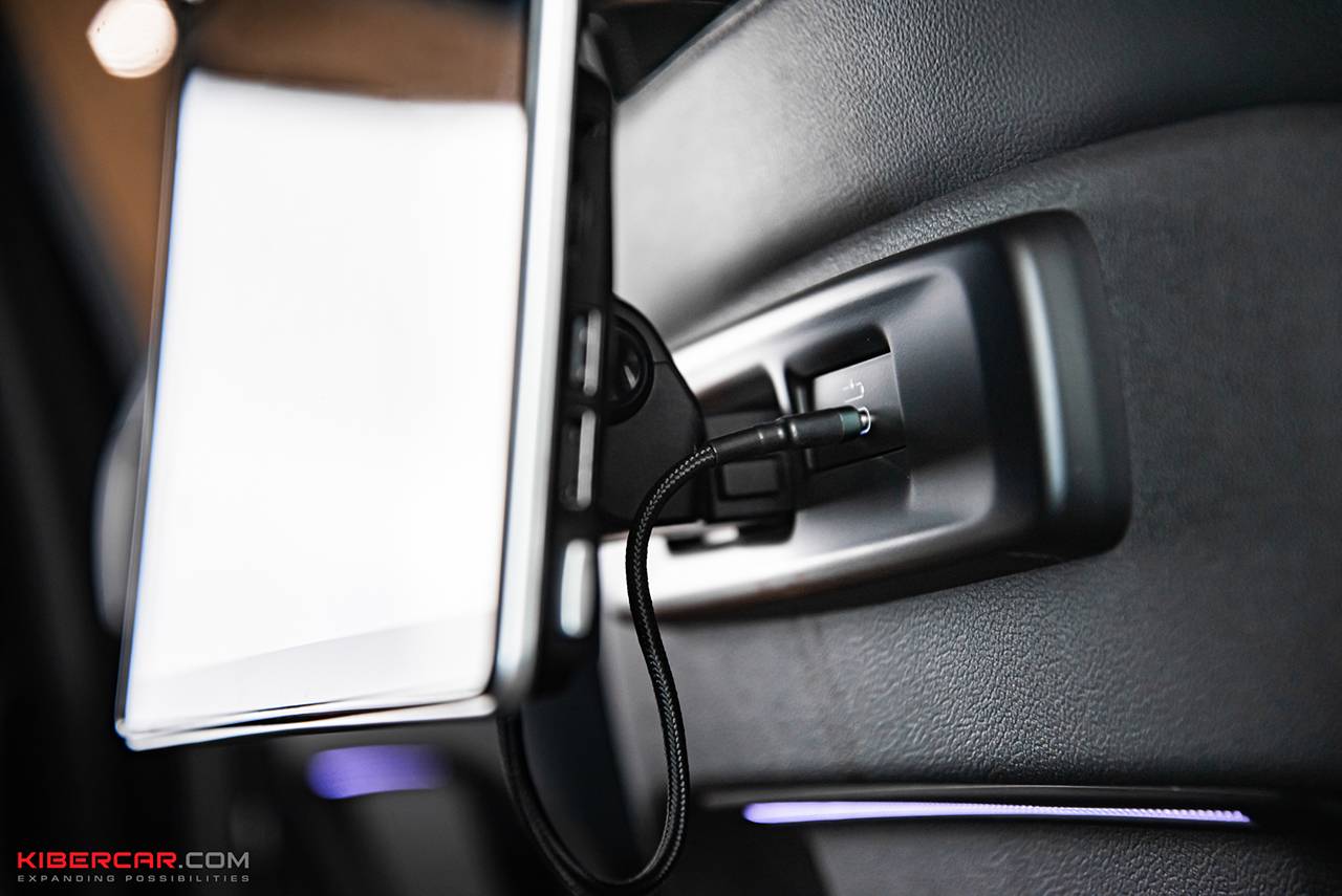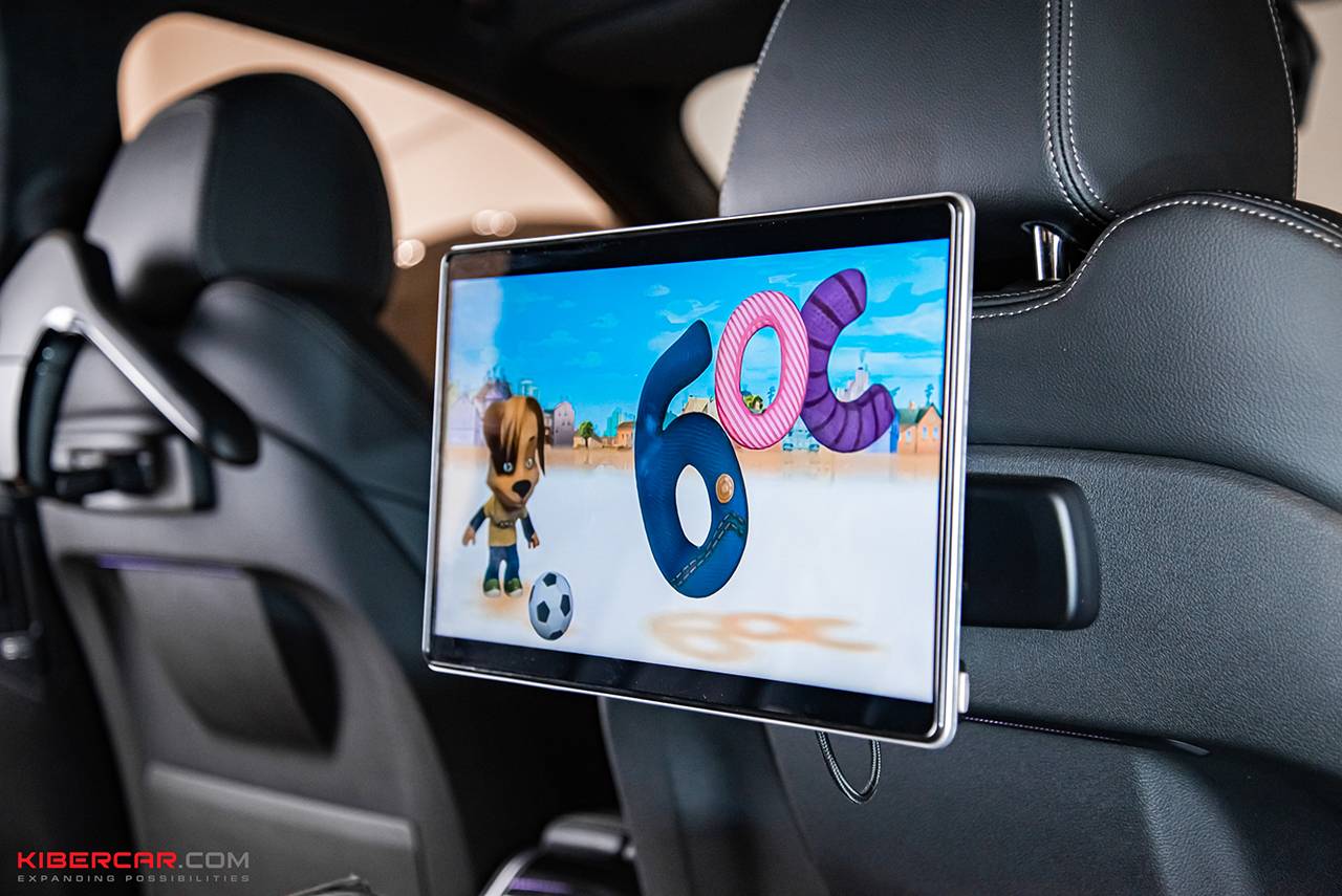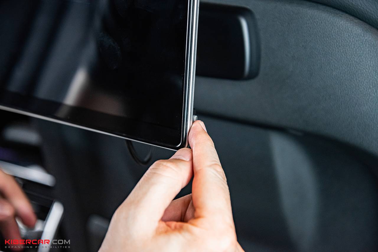 Крепления позволяют разместить пассажирские мониторы с диагональю 11.6 и 12 дюймов. Они имеют сенсорное управление. Внешний вид мониторов органично дополняет интерьер салона BMW.