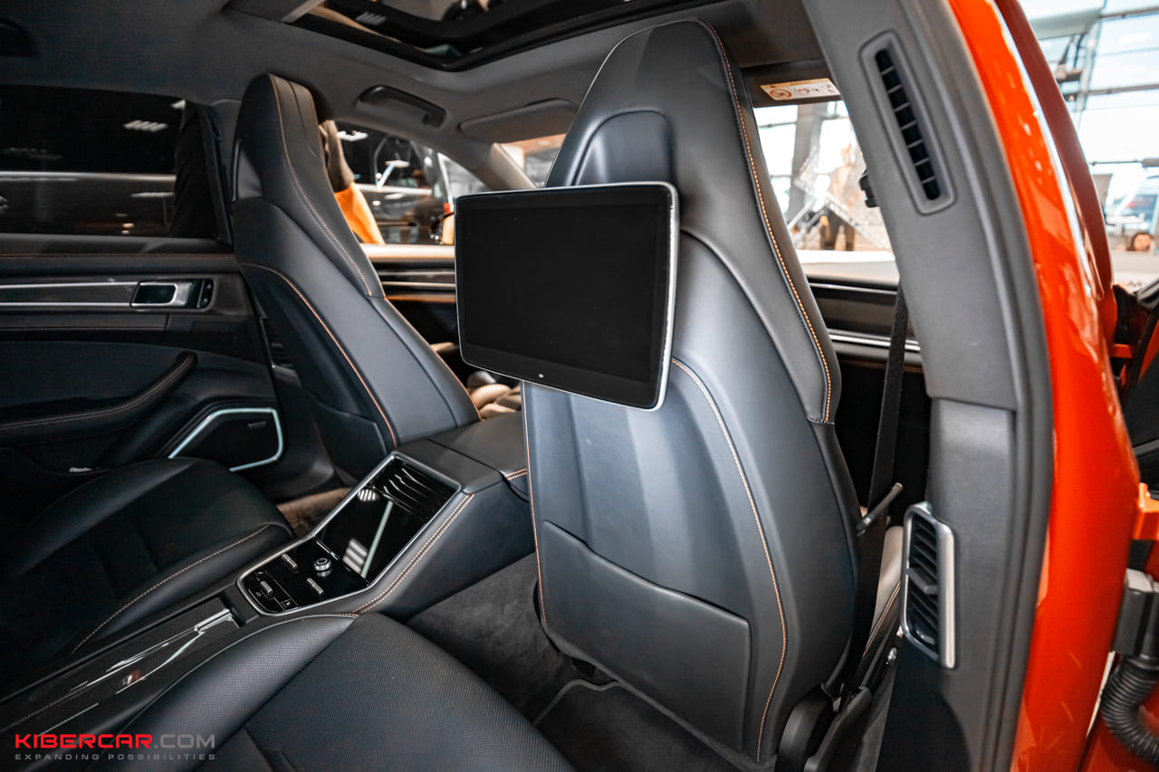 Мониторы, устанавливаемые в спинку сиденья, имеют те же характеристики, что и навесные мониторы. Они поддерживают сенсорное управление. Мониторы располагаются прямо перед пассажирами, что позволяет задавать нужные настройки мультимедиа, не вставая с места.