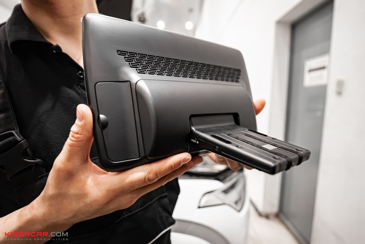 Этот способ установки безопаснее, чем другие. Будучи утопленными в спинку сиденья, мониторы меньше подвержены случайным ударам, царапинам и повреждениям от ног задних пассажиров. Они жестко закреплены и не реагируют на вибрации во время движения.