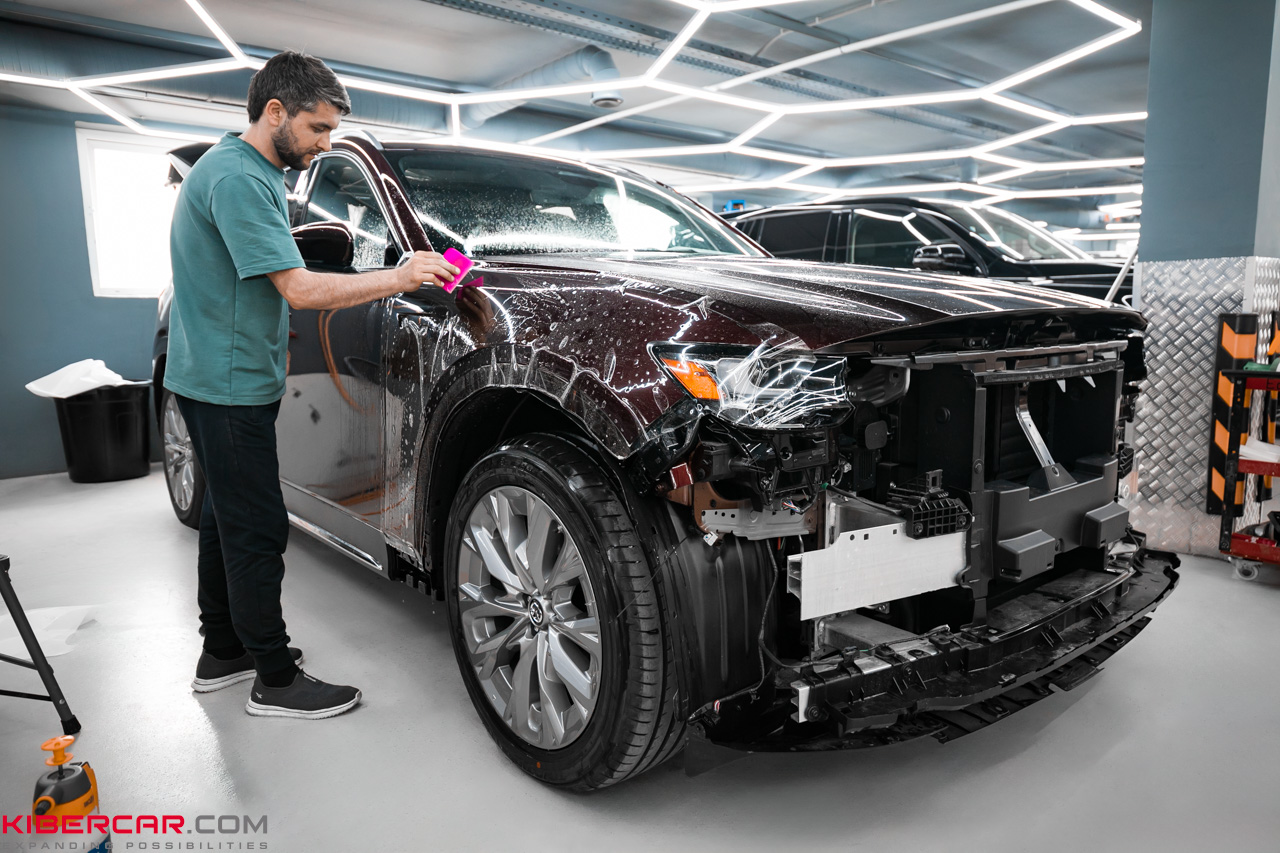 Оклейка автомобиля антигравийной пленкой выполняется в несколько этапов: