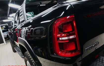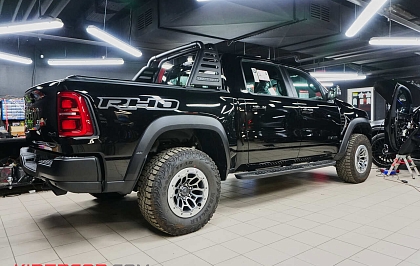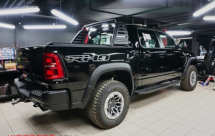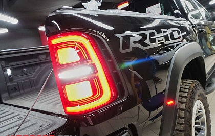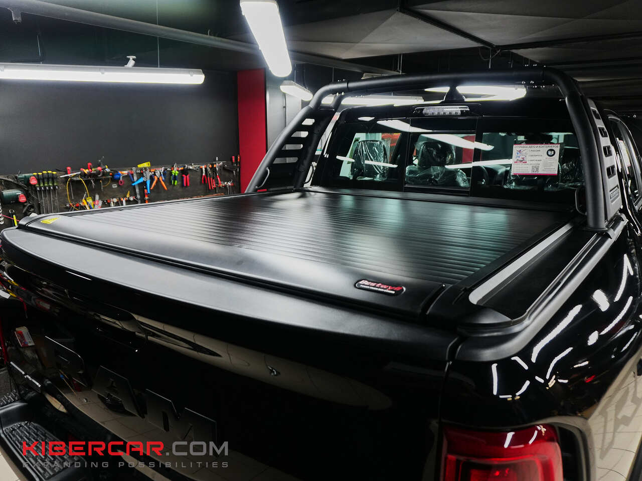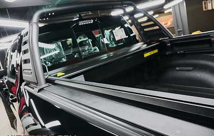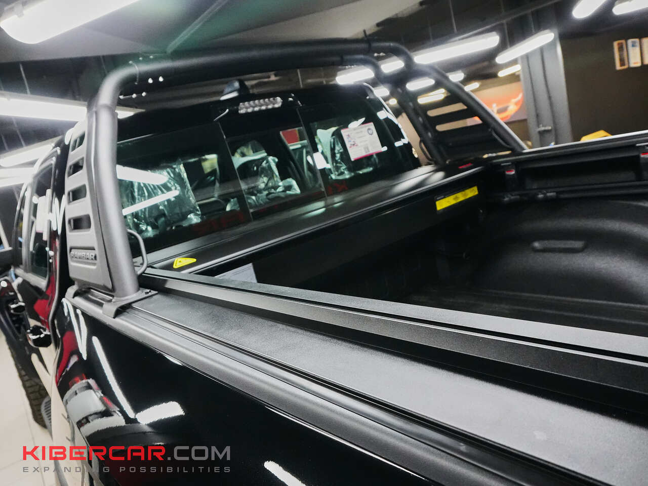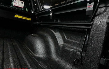 Так же крышка кузова служит надежной базой для установки силовых рейлингов. Сверху можно разместить светодиодные фонари, прожекторы, канистры с водой и топливом, превратив пикап в полноценный экспедиционный автомобиль. Это сделает вашу машину готовой к любым приключениям.