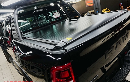 Крышка кузова изготавливается из металлического сплава с матовым черным порошковым покрытием. Оно не выгорает на солнце, не тускнеет и не меняет цвет. Покрытие выдерживает удары камней и веток, воздействие влаги и автомобильной химии. Крышка черного цвета с лаконичным оформлением придает автомобилю выразительный спортивный дизайн.