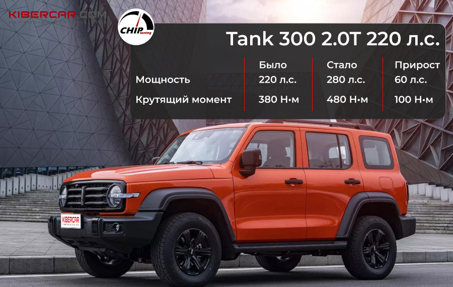 | Tank 300 | 2.0T 220 л.с. | 220 280 +60 | 380 480 +100 |
