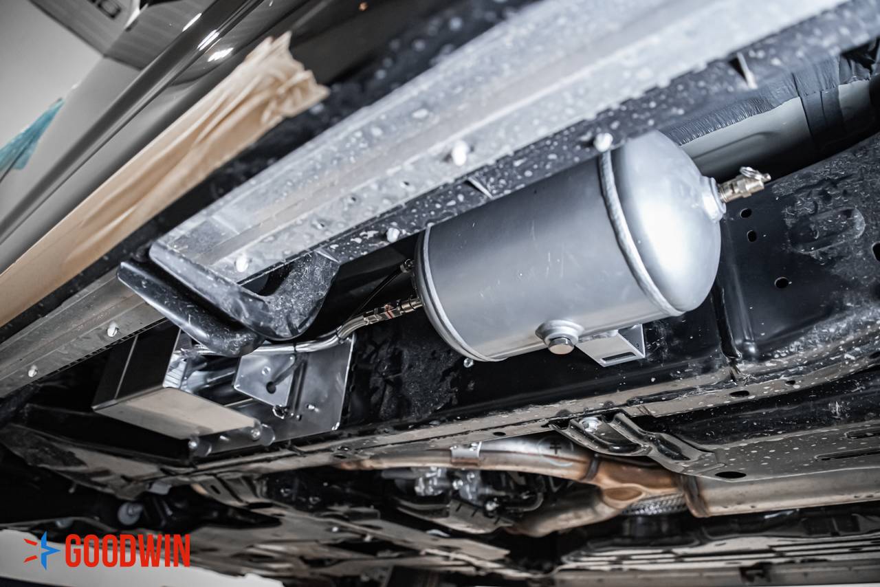 Необходимо разработать комплект крепежей, который позволит установить систему GOODWIN без изменения конструкции и серьезной доработки автомобиля. Наши конструктораизготавливают специальные кронштейны крепления, которые позволят установить компрессор и ресивер на раму автомобиля без ее сверления. Преимуществом установки на раму является не только установка в штатные места, но и удобство обслуживания системы. Конденсат, который скапливается в ресивере можно теперь сливать без демонтажа самого ресивера, достаточно открутить болт, что очень удобно и экономит средства владельца.