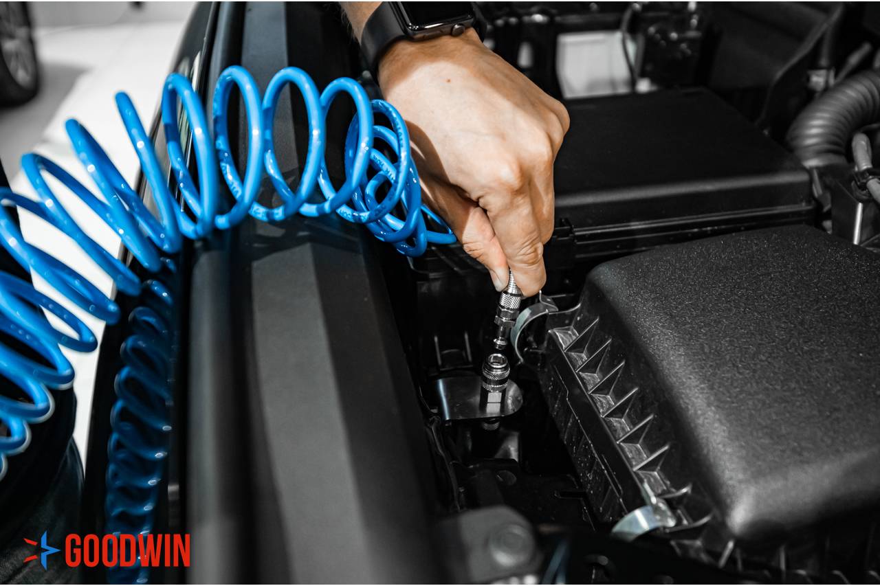 Воздушный сигнал с системой подкачки колес GOODWIN предназначен для размещения под капотом автомобиля, причем основные запчасти допускается размещать в разных частях автомобиля. Например, если пневматический сигнал по умолчанию располагается в передней части автомобиля, то ресивер и компрессор можно разместить в багажнике, под днищем или салоне, если в моторном отсеке для них не найдется места. Система на базе компрессора GOODWIN 275C рекомендуется к установке в сухом месте (салон или подкапотное пространство, верхняя часть), там где попадание воды возможно, но не будет полного или частичного погружения. Система на базе компрессора GOODWIN 380С может быть установлена в любом месте автомобиля и допускает полное погружение в воду.
