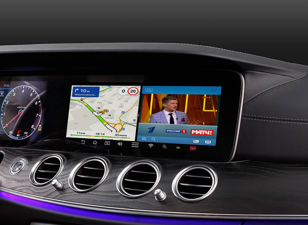 Да. AirTouch Performance обладает HDMI-выходом, благодаря чему картинку ОС Android с центрального монитора можно транслировать на любой экран с аналогичным методом приема сигнала. У нас в наличии есть специальные для этого мониторы в подголовник передних сидений.