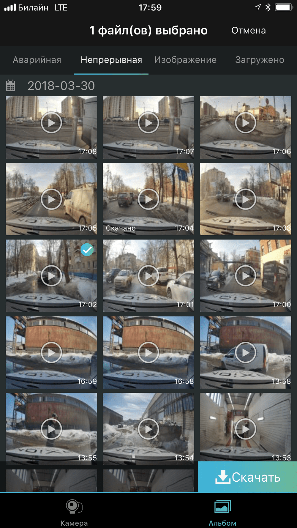 Стоит завести автомобиль, и видеорегистратор автоматически начнет свою работу. Он будет записывать все, что происходит, в режиме «циклической записи». Видео продолжительностью до пяти минут (подходящий формат можно задать в настройках) будут сохраняться на карте до ее заполнения, после чего новые материалы заменят старые. С мобильного приложения, которое одинаково хорошо работает на смартфонах с ОС Андроид и iOS, можно просматривать видеозаписи в режиме реального времени, при необходимости моментально скачать ролик в память мобильного устройства. Дата и время записи будут автоматически синхронизированы с телефоном.